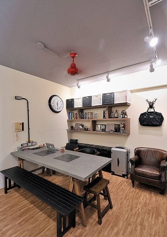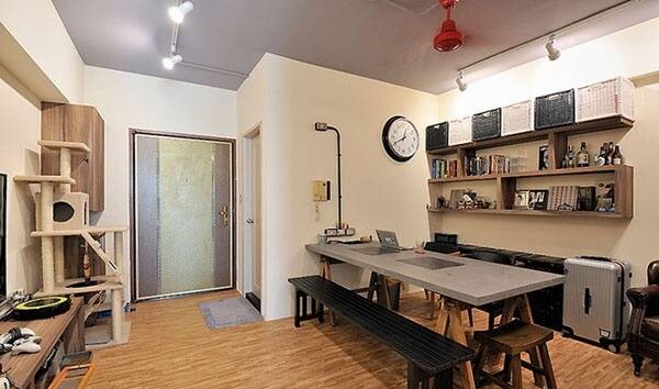 這間30平的迷你戶型屋子,一進門就能看見一張長條形的灰色桌子,這一區域既可作為用餐區,又能作為會客區,也能夠當作閱讀區域來使用,巧妙的起到了一室三用的實用效果。