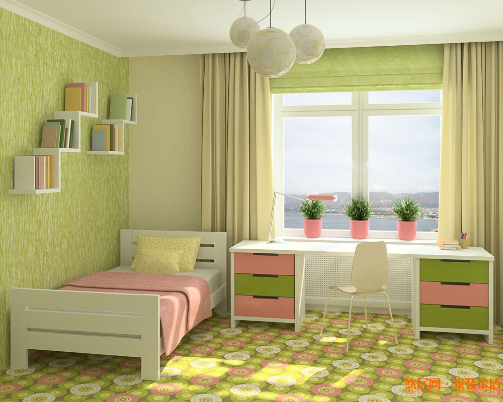 武漢裝修網-武漢悠居推薦墻面配色:綠色從淺至深的色調有數十種,新綠,柔弱有點偏黃,卻清亮養眼;蘋果綠,亮麗自然,不帶一絲做作;翠綠,凸顯出飽滿的生命力。這些來源于大自然的綠色,能讓家更富有朝氣和生機。