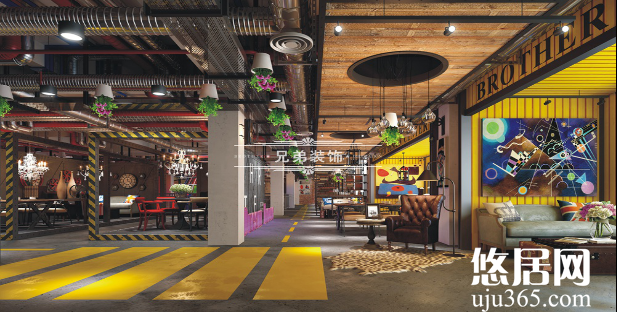 兄弟裝飾“創意工場”的整體設計風格定位是LOFT工業風格。用環保的,粗糙質感的,強烈色彩對比的,具有波普風格的裝飾語言,以及盡可能地對回收物的再次改造利用,比如舊家具、廢棄工業機械、安全帽、腳手桿等等生產作業工具,和工地回收的可利用材質,將通過后期巧妙的設計,體現出富有行業特性和人文情懷的動人細節。