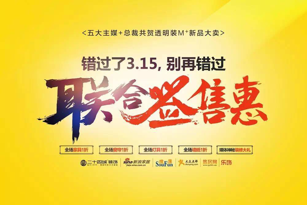 錯過了315,別再錯過了五大主媒+二十四城裝飾的聯合簽售惠!讓我們為受益于山城裝友朋友們邁出關鍵性的第一步!!