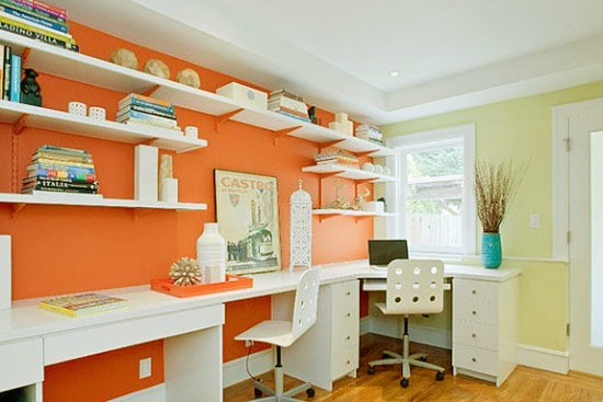 臥室是休息的地方,需要的是安靜休閑,一般用比較淺的暖色調比較好,如米黃、橘紅等,粉刷面積不宜過大,采光比較好的臥室局部使用深色更能體現房間的個性。