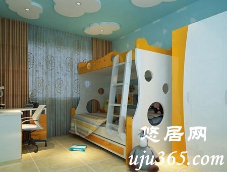 這款設計恰恰滿足了小戶型面積小這一問題,上下鋪的設計會給孩子一種自由感,即使同處在一個空間,也會保留自己的“小隱私”.這樣的新鮮感也會增添孩子相處的樂趣,減少不必要的矛盾.同時節省了許多空間,增加了孩子玩耍的區域