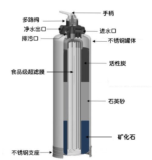中央凈水機一般安裝在前置過濾器之后,同樣處于主進水管道上。它可以有效清除水中的氯,鐵銹,重金屬,病毒藻類以及固體懸浮物,使處理后的水清澈潔凈,用于家庭生活。部分擁有超濾膜的中央凈水器還可以去除細菌,輸出凈水可以用于直飲。