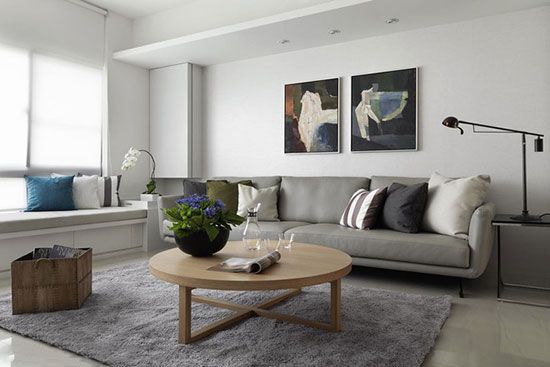 客廳的地毯不一定要非常龐大,小小的一塊,根據(jù)季節(jié)的不同更換不同的材質(zhì),或毛絨或麻布,沙發(fā)、地毯與地板的深淺過渡,給家添加了層次感。