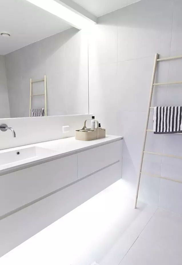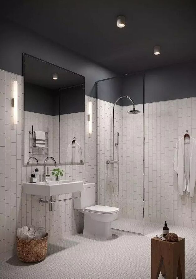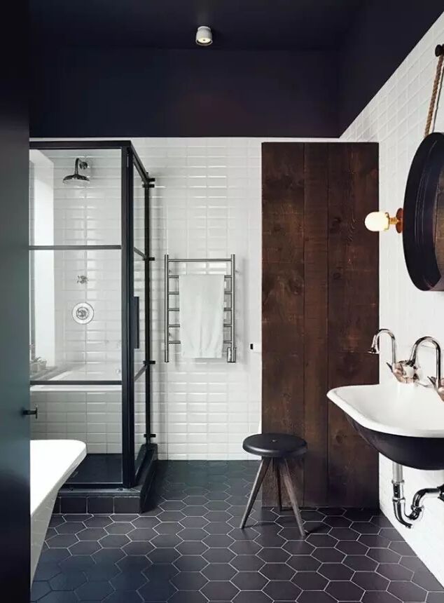 黑白衛浴間比較常見的是將黑色用于地板或天花板。衛浴間一般空間較小,墻面用純黑會比較壓抑。▼