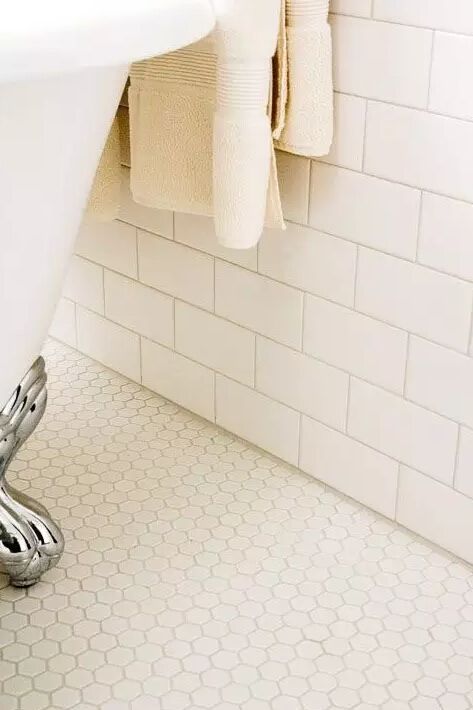 顏色淡雅的白底花紋磚,和白色方磚組合搭配,過渡銜接也很自然。▼