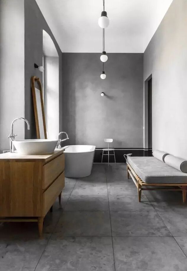 灰白水泥墻+水泥色地磚。▼
