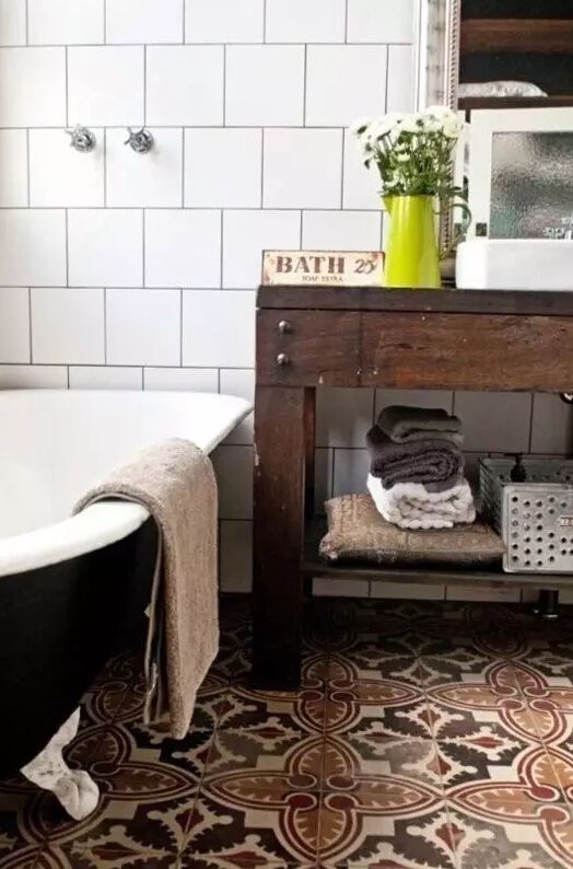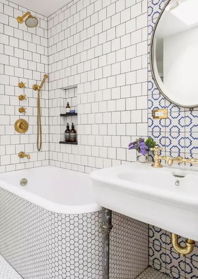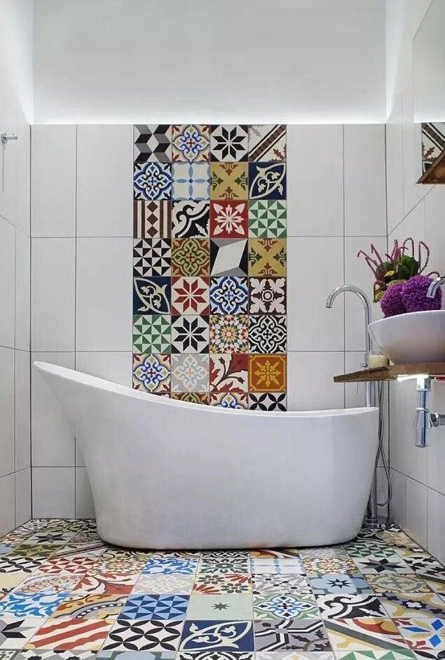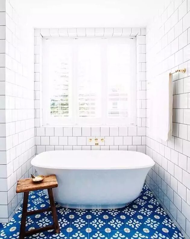 當然,花紋磚鋪滿墻面,也是美的。但是出于氛圍的考慮,還是推薦選擇顏色淡雅些的。▼.