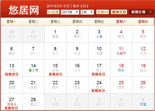 2018年2月裝修吉日 2018年2月裝修黃道吉日一覽表