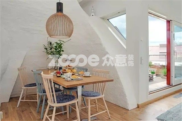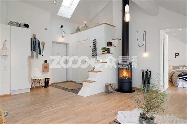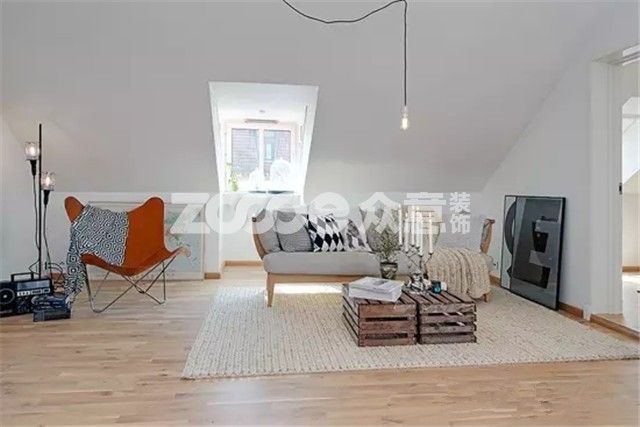 本文中的案例是一所位于瑞典的閣樓公寓,90平,4.5米的吊頂高度搭配開放式的空間設計,居室寬敞明亮。瑞典的軟裝風格給人總體的感覺簡約舒適又很優雅。本案中簡約復古的軟裝搭配讓人眼前一亮,雅致的溫莎椅、廢舊的木箱、休閑的家具軟裝整合,讓極簡風格的公寓盡顯優雅和時尚魅力。