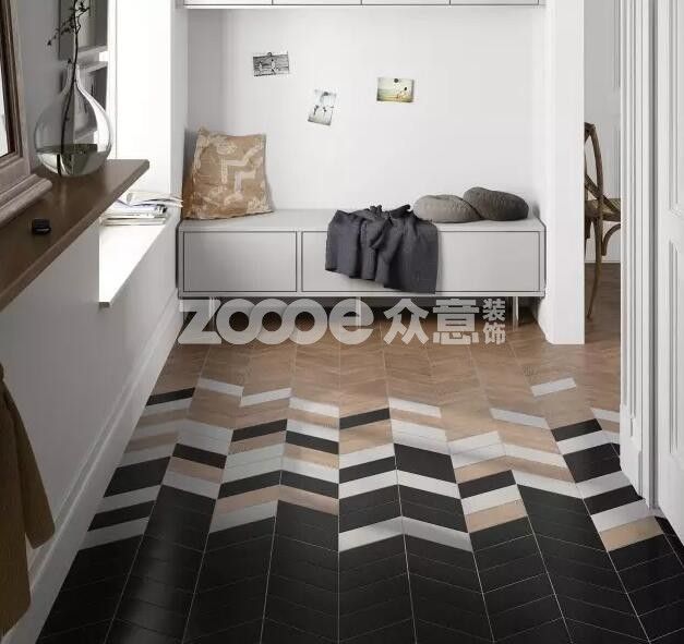 4、木地板搭瓷磚也可以很魚骨拼