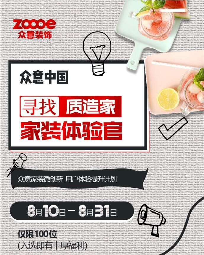導(dǎo)讀:眾意中國(guó)丨尋找100位“質(zhì)造家”家裝體驗(yàn)官