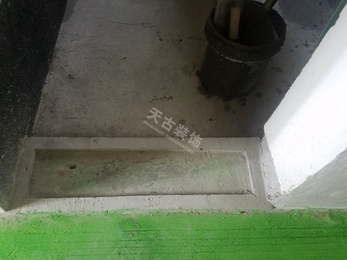 天古渝派·擋水門坎工藝:廚衛(wèi)門坎作為防水處理的薄弱環(huán)節(jié),施工中首先剔除原墻抹灰,然后使用高標(biāo)號(hào)防水砂漿制作擋水門檻,擋水門檻兩端直達(dá)原始?jí)w,使廚衛(wèi)地面形成了完整坑槽,解決了門檻石下易滲水的難題。