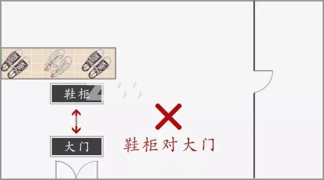 鞋尖對大門不僅給人不禮貌的感覺,同時風數學上說,鞋尖有煞氣,恐怕這煞氣沒有,但是出門穿鞋倒是挺不方便的。而鞋尖面朝墻壁卻能在快要遲到的早上能節省時間,鞋尖朝外的話還得彎腰將鞋子擺正再穿上,不符合人體動線規則。