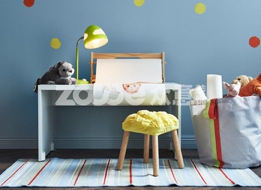 扶手椅區域用作喂奶和唱搖籃曲的地方,這樣你就能輕松把孩子放回床上了。你用的邊桌以后可以用作兒童凳——套上彩色的凳套,讓它更柔軟。一開始,這款獨立式的儲物袋可用來擺放舒適的毯子。孩子長大后,可用來擺放他們的東西。