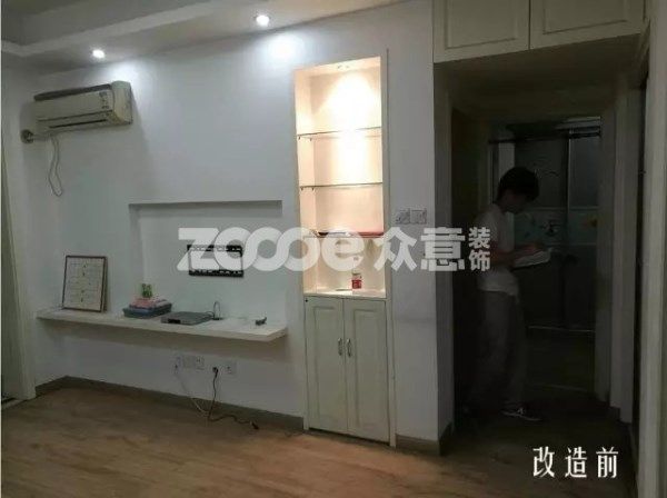 改造后,設計師對整體的墻面進行了換色,縮短了原先的電視柜隔板,移動了掛機的位子。刷新了家具器和地板。