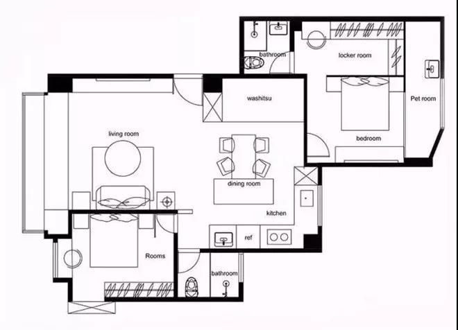 開放式空間設計,基本上省去了門,將兩個空間連成一個空間,瞬間讓空間擴大一倍。
