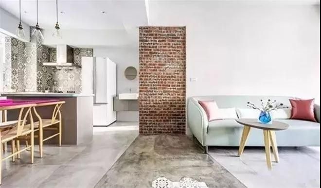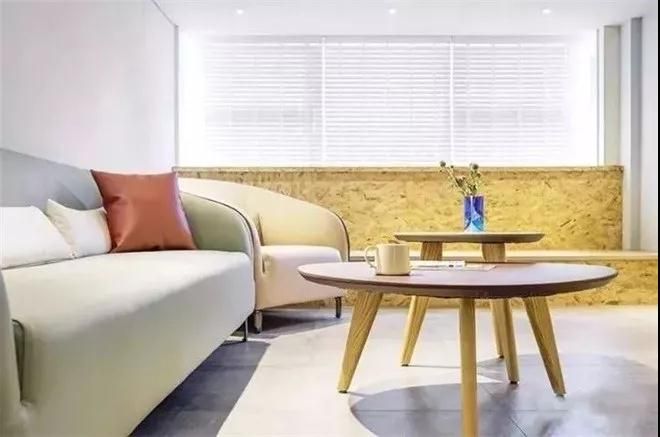空間設計相當簡潔,大白墻,低飽和色系沙發,有種軟糯的感覺,適合小女生。