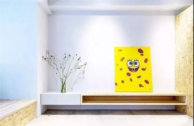 這只海綿寶寶戳中我的笑點啊,因為電視等家電還沒到,先用這個卡通掛畫代替了~