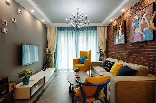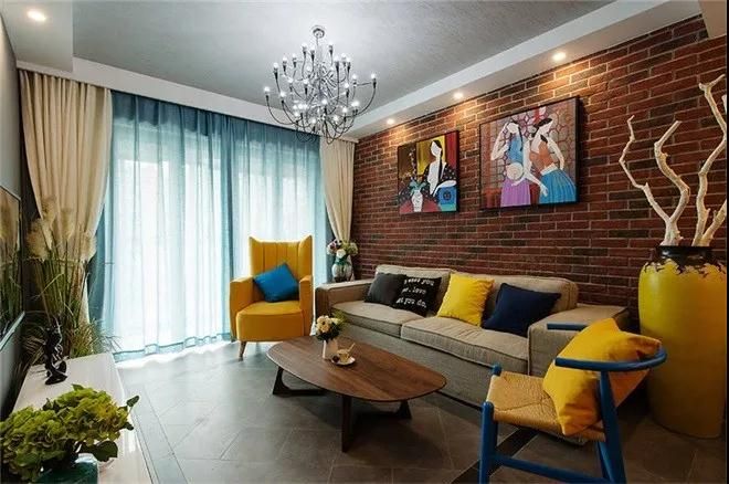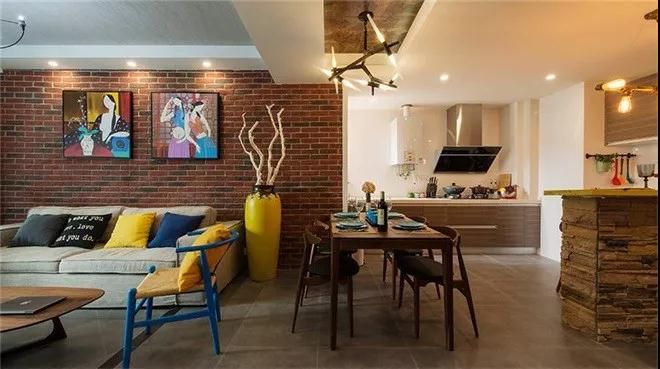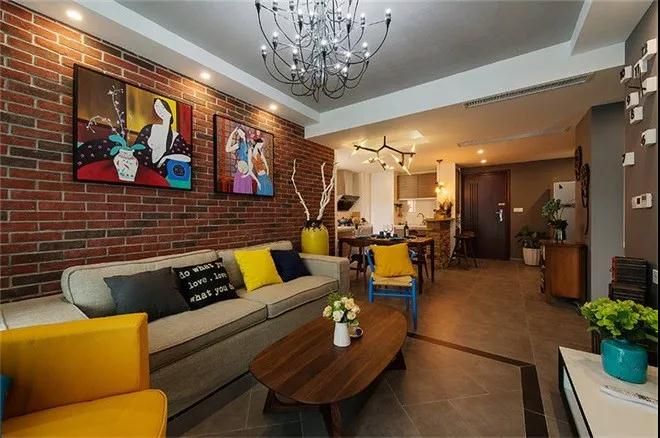 厭倦了白墻,就換上更具工業氣息的的磚墻,運用在客廳,在配上現代簡約風格家具與美艷的色彩。就很贊啦。