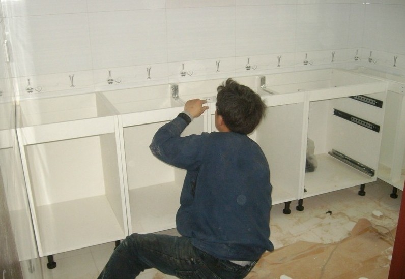 吊頂結束后,可以約櫥柜上門安裝了。同時安裝的還有水槽(可以不包括上下水件)和煤氣灶,櫥柜安裝之前最好協調物業把煤氣通了,因為煤氣灶裝好之后需要試氣。