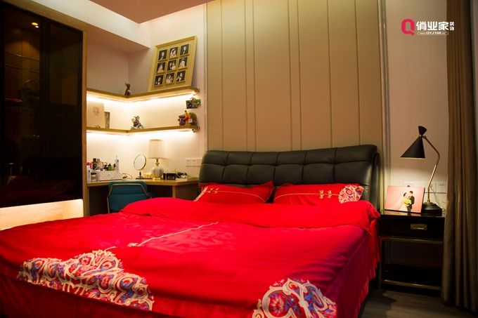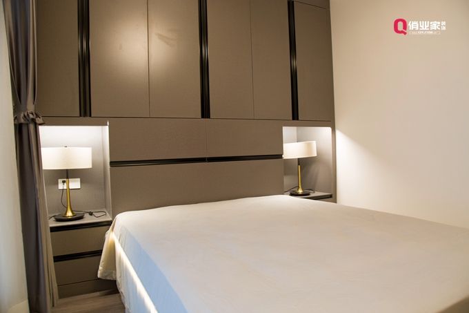 床頭空間:可以選擇與床齊高的床頭柜,零碎物件隨手可拿,也可將在墻面安裝嵌入式隔板兼顧收納與裝飾,還可以收納更多睡前讀物,也可擺些藝術品等等。