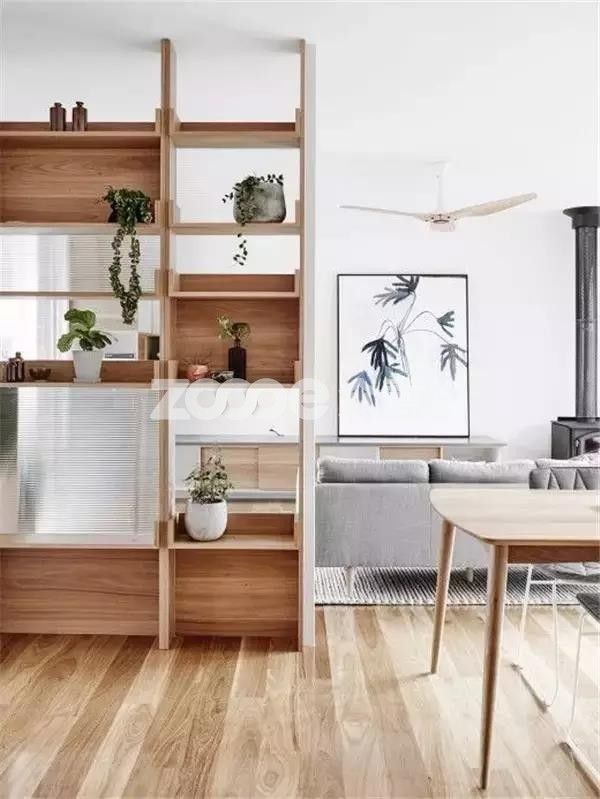 多數情況下會用半隔斷或者通透的鏤空隔斷,對采光和空間的利用來說相對比較好。而且這兩個空間本身沒有太需要完全隔開,所以半隔斷、鏤空隔斷就可以滿足。