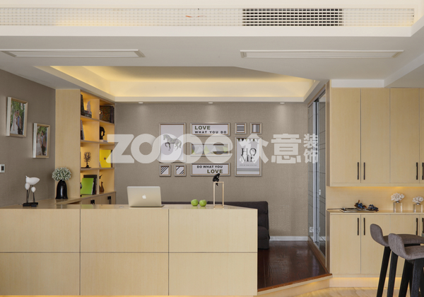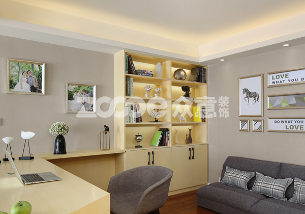 見光不見燈最適合的空間莫過于小戶型的家居了,小戶型住宅因為面積較小,因此房屋的設計以簡潔、多功能為主,而“見光不見燈”的設計,則很好的將燈飾“隱藏”起來,合適的光源發出溫馨的燈光效果,也能夠帶給小戶型溫馨明亮感。圖上以溫馨小戶型裝修效果圖為例,實木落地式書架自帶燈光的設計,在書架隔板之間安裝了隱形的燈具燈飾布置,這樣既點亮了書架,也讓主人更好的找到需要看的書籍或資料。另外在書房的天花板上,用暗裝方式的筒燈射燈照明,讓天花板看上去簡潔、大方不少,加上屋內搭配的棉麻質感沙發椅家具組合,呈現出小家小溫馨的氣氛。