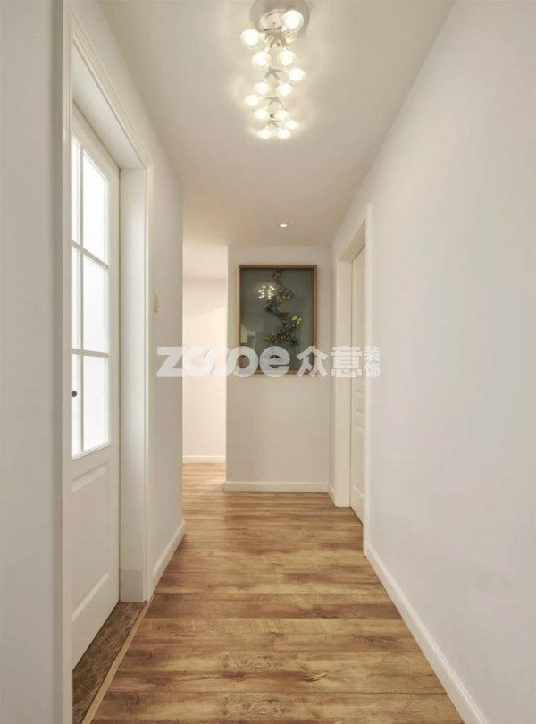 走廊端景,造型頂燈與蝴蝶裝飾畫,充滿趣味性。