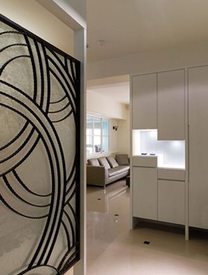 希望能有玄關的界定,但空間不夠大,若使用柜子區隔,勢必會吃掉一些地坪,改以美觀的玻璃屏風,不但有了視覺上的緩沖,同時也做出玄關與室內區域的分野。