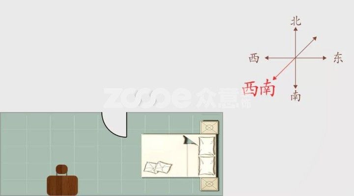 西南方,在風(fēng)水上被稱做“坤”宮,五行屬土。由于坤的本意為地,在這個(gè)方位的臥室居住十分有利于家中的女性,使其工作事業(yè)順利、溫柔賢惠等,還能保持較好的家居生活質(zhì)量。缺點(diǎn)則容易使家中陰盛陽衰,不利于男性事業(yè)發(fā)展。