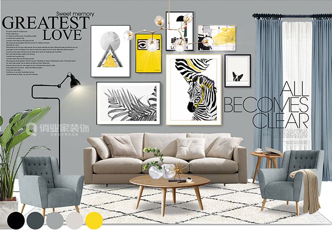 需要特別強調的是,家具飾品在室內環境中能起到裝飾美化室內空間的作用。家具陳設和飾品搭配要注意整體性,注意風格的統一,營造出好的氛圍和感觀,可以將原本素雅的空間,呈現出藝術感。
