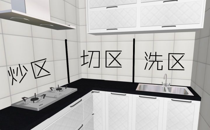 根據洗菜(水槽)→切菜(臺面)→炒菜(爐灶)按順序進行排列,可以順時針,也可以逆時針。