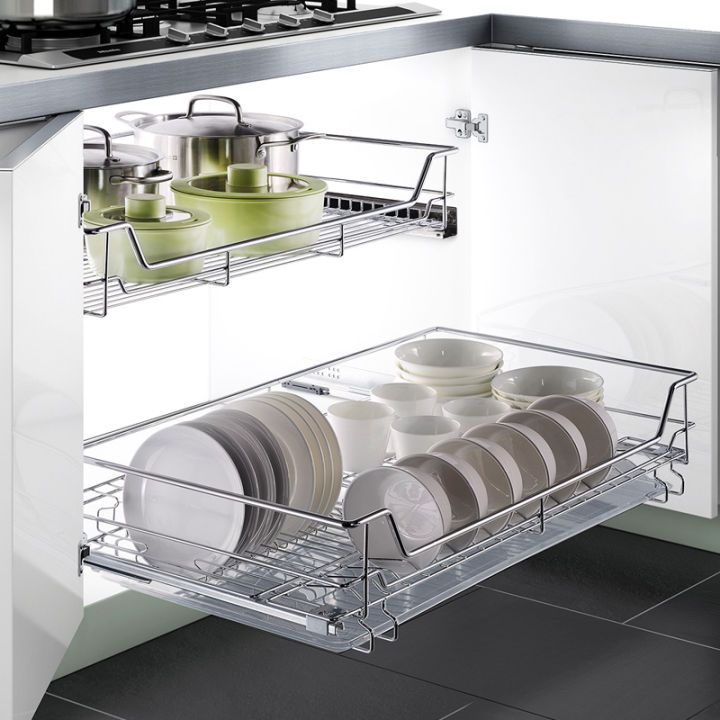 配件規劃 拉籃和碗籃都是提高廚房利用率的利器。 安裝調味籃預留位置,可以參考下面尺寸。
