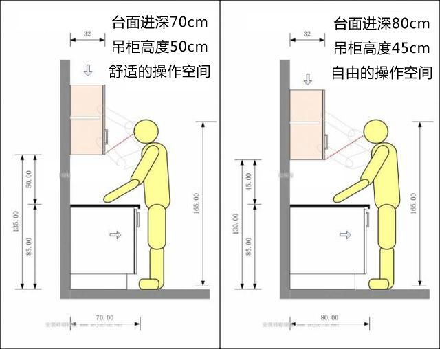 深入探討 關于提高吊柜利用率的方法探討,通過加寬臺面,降低吊柜,可以在使用櫥柜的時候更加舒適,前提是需要廚房寬度足夠大能讓臺面延展到75mm,有得有失,看個人選擇。
