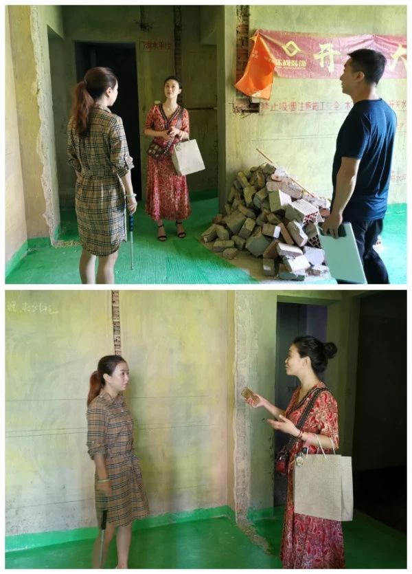 另一處工地現場,工地剛進場,現場刷了黃墻綠地,開了線槽。恰逢業主也正在現場,總裁與業主現場進行親切交談。檢查工地環境、施工質量,監督施工工期,針對施工中出現的問題督促相關人員快速有效地解決,樂尚裝飾設計師和項目經理、裝修業主一直保持密切溝通,總裁一直密切關注。將裝修交給我們,您安心上班去!