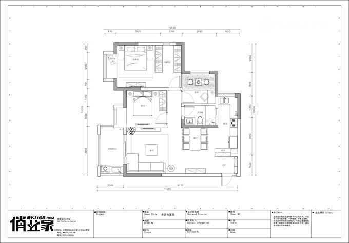 定制設計:1、生活陽臺納入廚房,廚房做成開放式設計。2、取消主衛,增加主臥衣帽間區域。