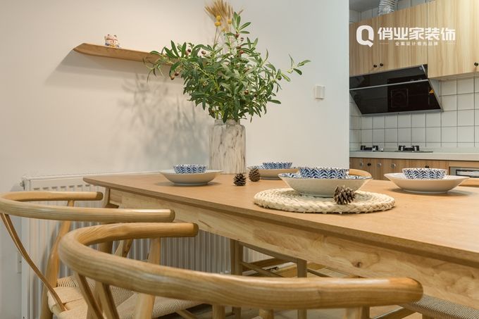 餐廳廚房是開放式設計,讓原本狹小的空間擁有了渾然一體的感覺,視覺,曲線更加完美!