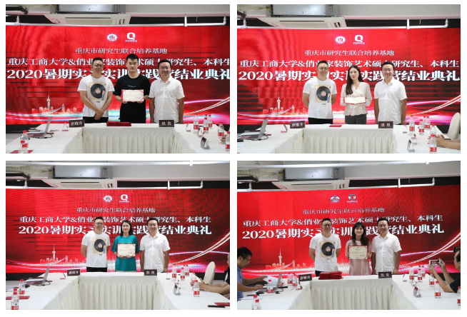 當天,現場還舉行了重慶藝術碩士研究生聯合培養基地2020暑期實習實訓實踐營結業典禮,唐維升先生和殷俊院長共同為20位本碩實習生頒發了結業證書。