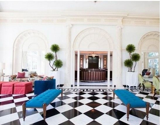 6.黑白幾何圖形地板與色彩亮麗的凳椅,在鮮明的對比中形成呼應!