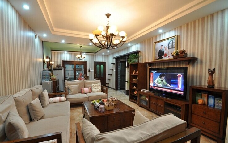比較簡單的電視背景墻還有壁紙或者壁布,壁紙簡潔美觀,價格適中,是性價比較高的電視背景墻。壁紙廠家一般都會包鋪貼,但是要做成電視背景墻,要在細節上下些工夫,比如不同壁紙交接的地方,電視墻的邊角、收口處等。