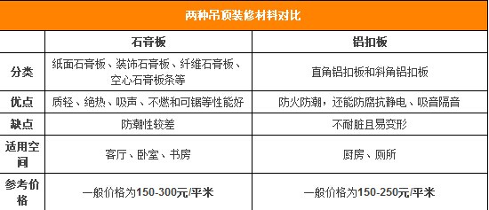 注意事項2:吊頂裝修材料PK榜
